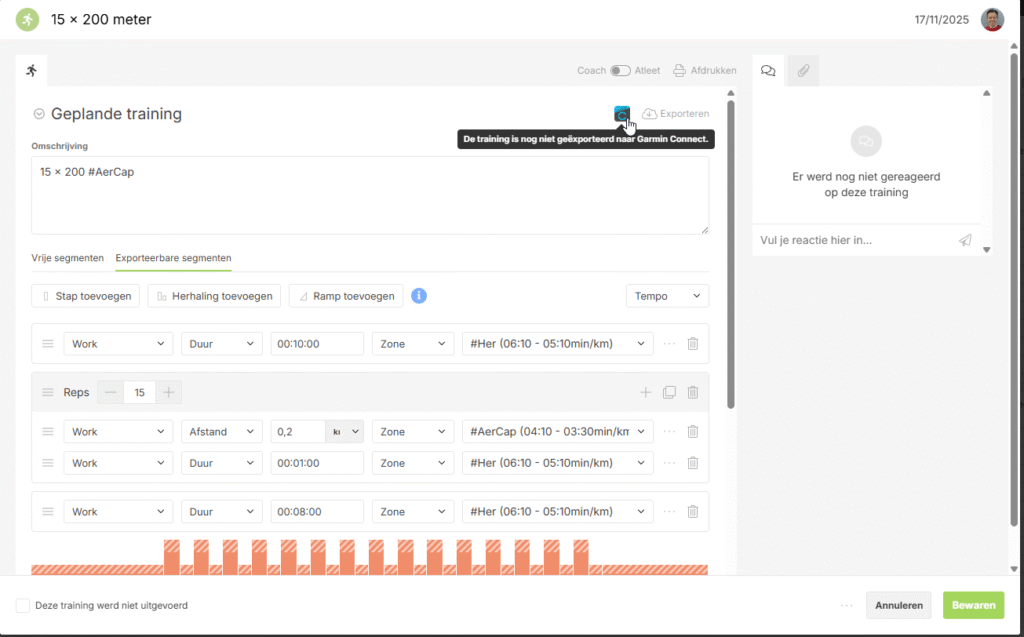 - Trends te herkennen: Zie direct of de atleet voldoet aan de geplande intensiteit en volume.
